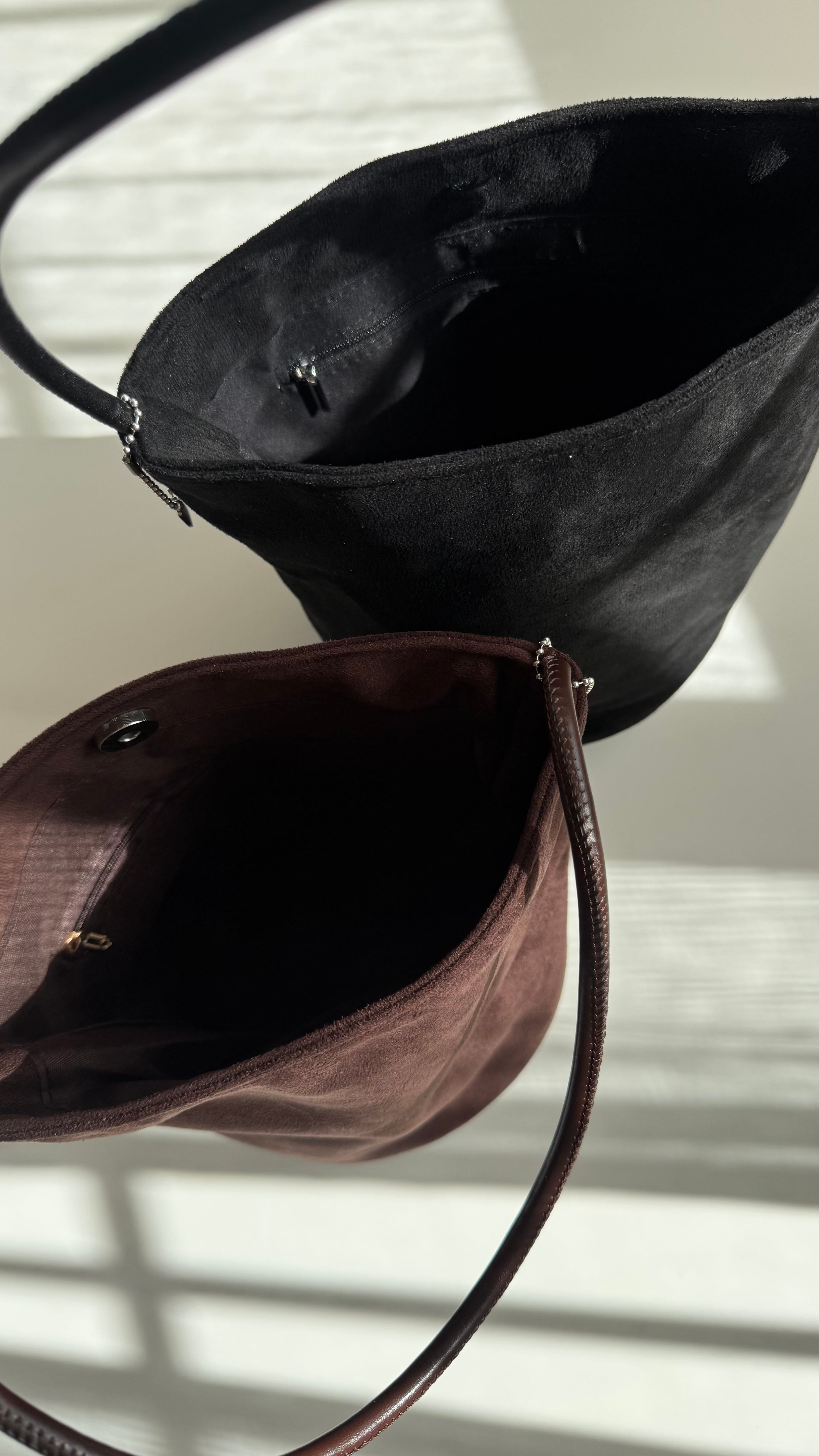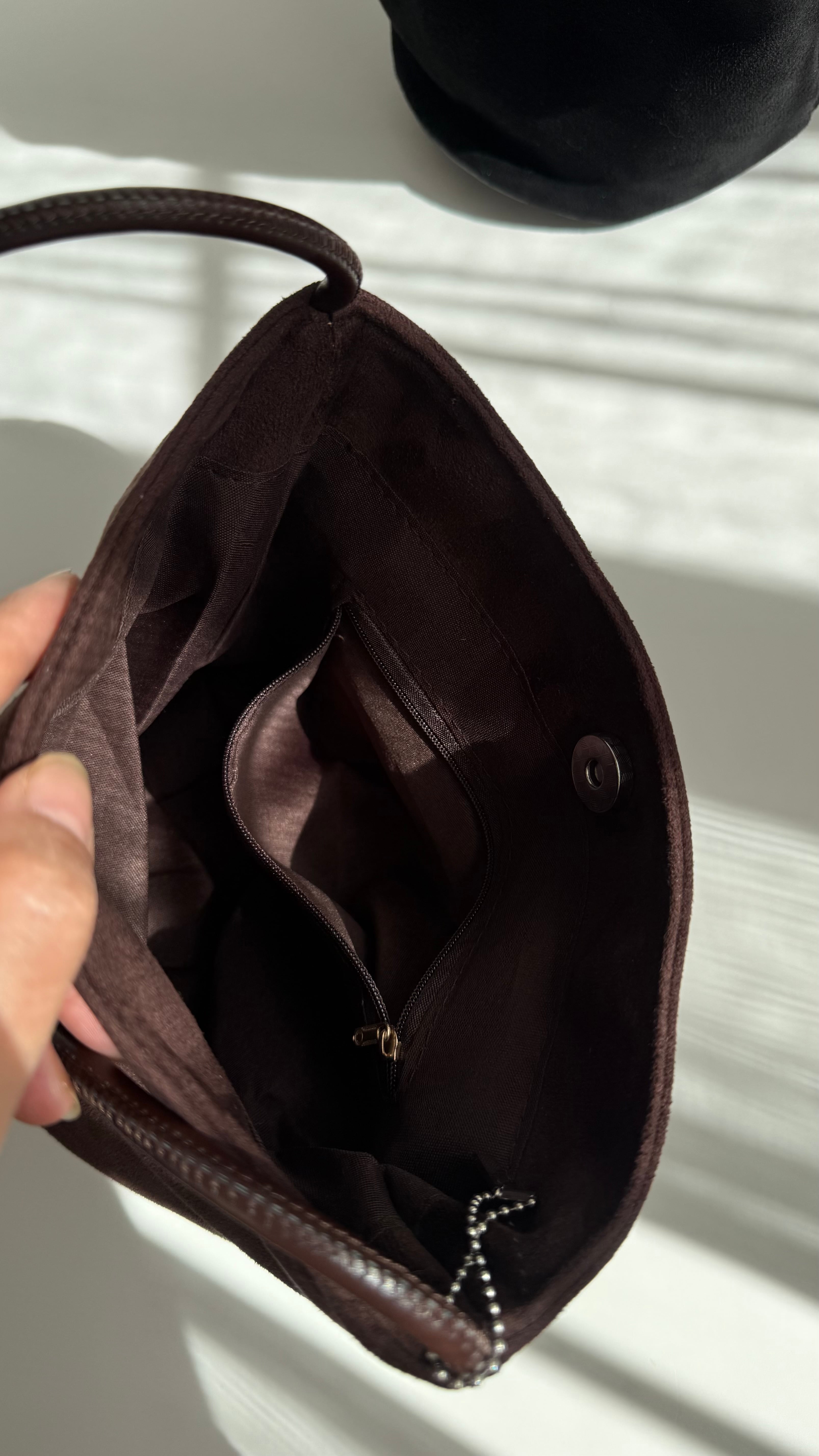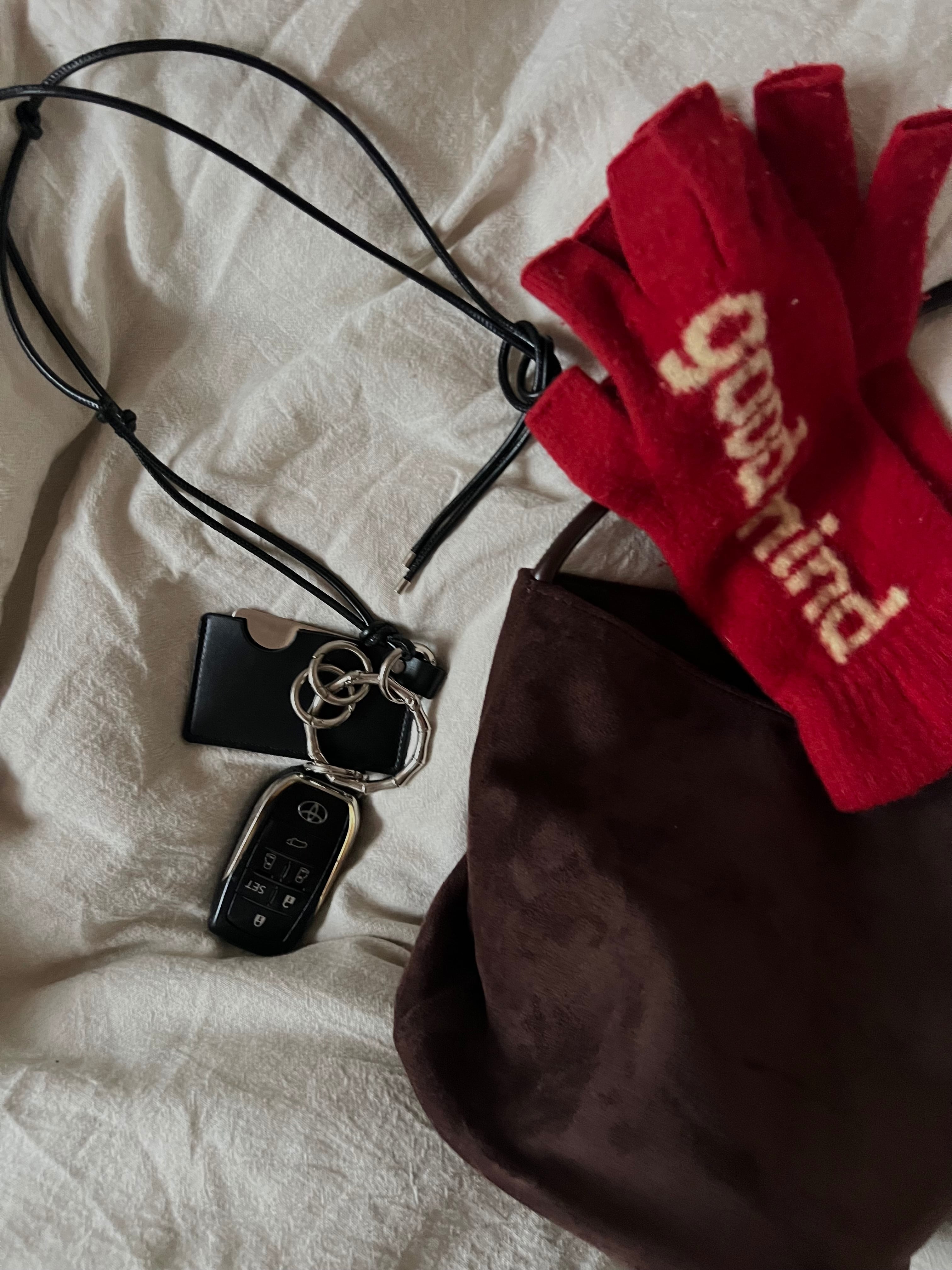 表面はスエードライクで柔らかいですが、ナイロンの内布との二重構造になっているためへたりにくく丈夫です。